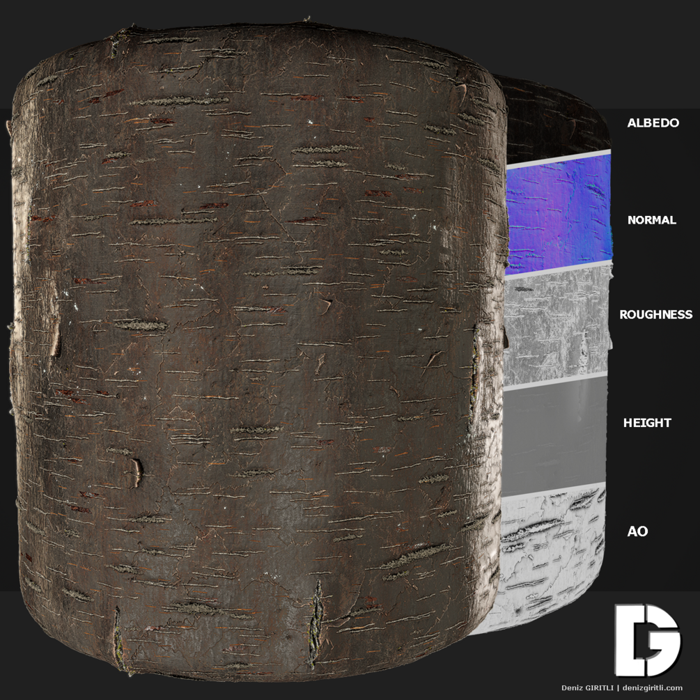 Sweet Birch Tree Bark Material - Substance Designer
